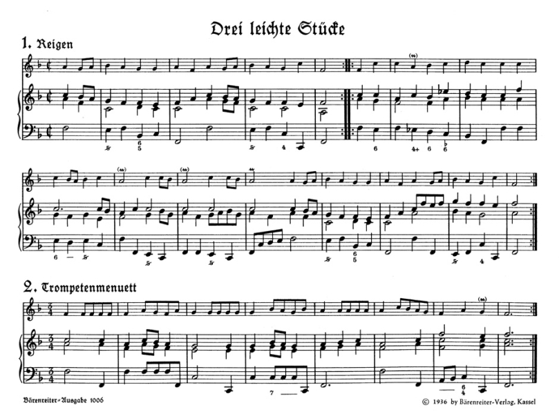 Obsazení: Sopran-Blockflöte (Violine, Flöte, Oboe), Klavier, Cembalo