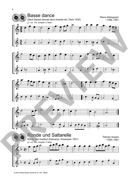 Attaingnant: Basse dance . T. Susato: Ronde und Saltarelle