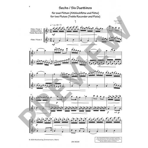 Obsazení: 2 Flöten oder Flöte und Altblockflöte