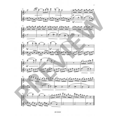 Diese sechs abwechslungsreichen Duettinos kommen fröhlich daher: mal in barocker Manier, mal modern swingend oder auch mit romantischen Harmonien. In den kurzen leichten Stücken halten die zwei Flöten miteinander Zwiesprache, ganz gleichberechtigt hat jede einmal das Wort. Alle Sätze sind gut spielbar und in angenehmer Tonlage. Eine Flöte kann auch durch eine Altblockflöte ersetzt werden, was die Möglichkeiten in Unterricht und Vorspiel noch erweitert.