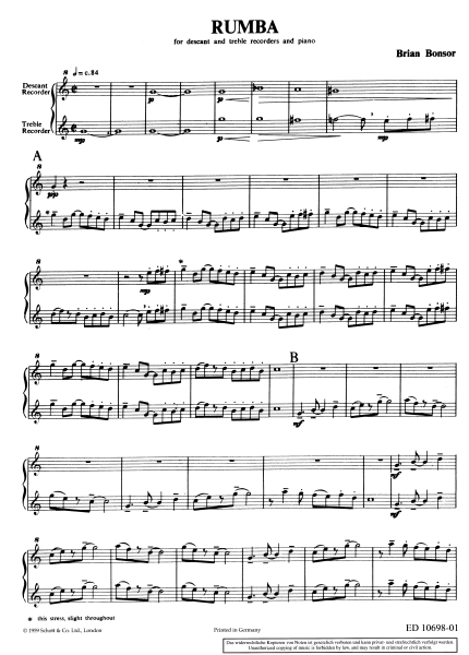 Obsazení: 2 Blockflöten (SA) und Klavier