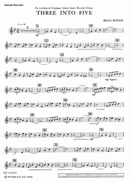 Obsazení: Blockflöten (SAT, divisi, 3 oder 5 Blockflöten) und Klavier
