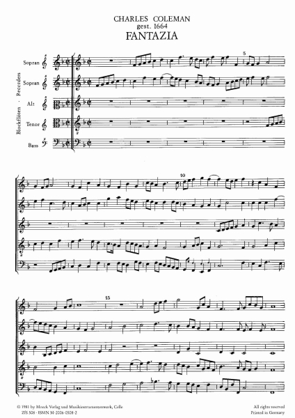 Obsazení: 5 Blockflöten (SSATB)