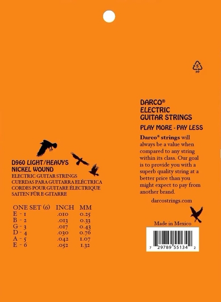 Struny pro elektrickou kytaru Darco jsou možná překvapivě málo známé vzhledem k tomu, jak dobře hrají a jak dlouhou životnost nabízí. Jsou vyrobeny tak, aby nabízely konzistentní zvuk po celou dobu své nadstandardně dlouhé životnosti. Použito je pocínované ocelové jádro a vinutí z niklu.