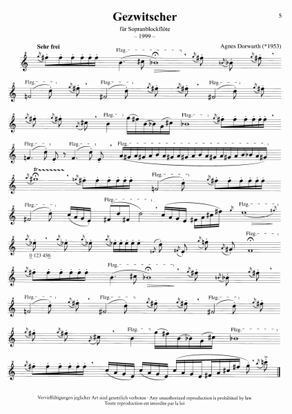 Obsazení: 1 Spieler mit Blockflöten (SinoSA) sowie Kopf einer Bassblockflöte im Wechsel