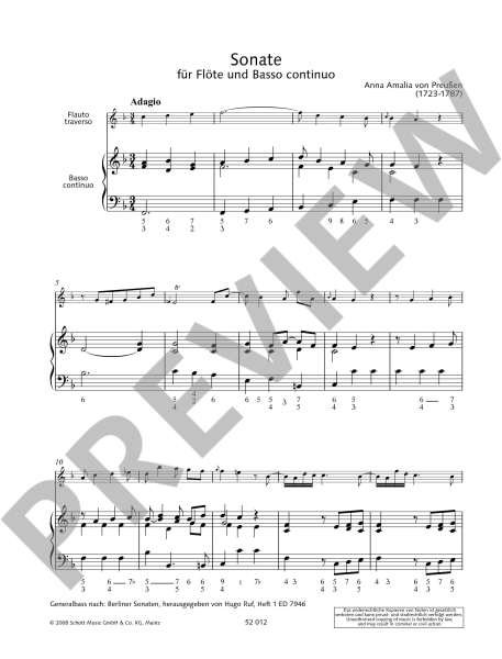 Anna Amalia von Preußen (1723-1787): Sonate F-Dur für Flöte und b.c.