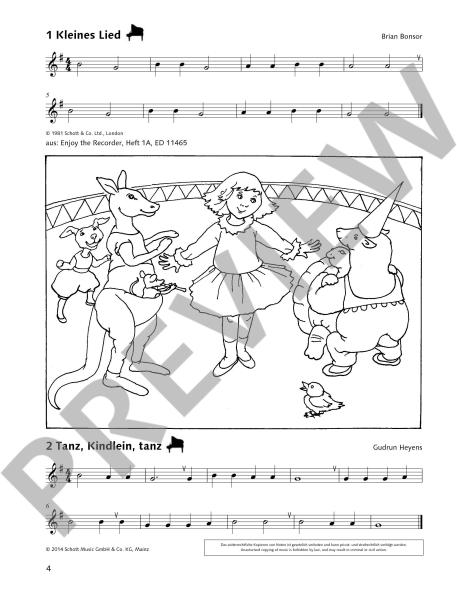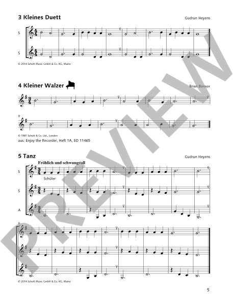 Obsazení: Sopran-Blockflöte mit verschiedenen Instrumenten (S, A, T, B-Blockflöten, Klavier, Gitarre, Schlagzeug und Bass ad lib.)