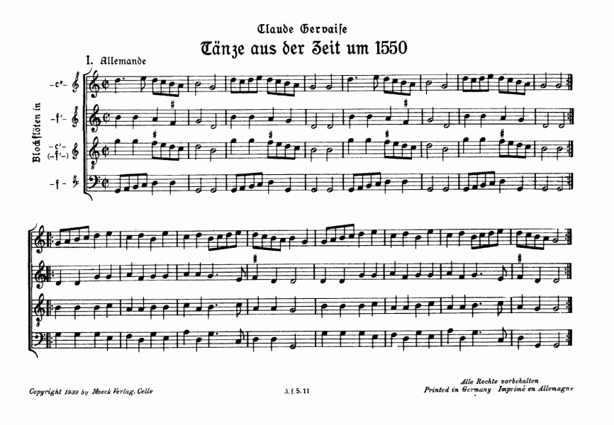 Obsazení: 4 Blockflöten (SATB)