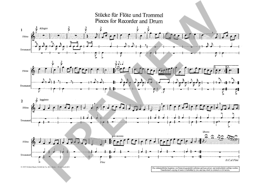 Obsazení: Blockflöte(n) (S/SS) und Trommel