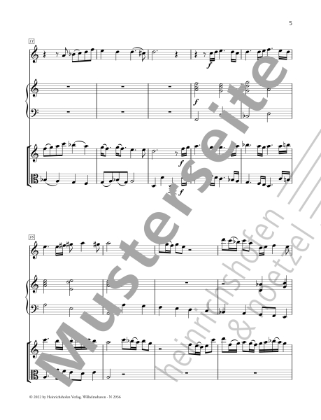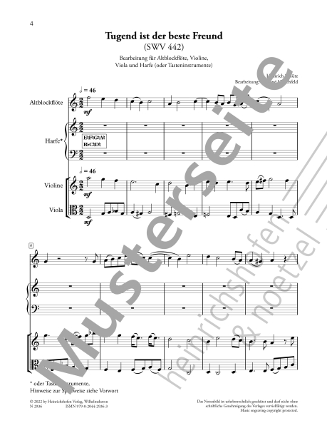 Obsazení: Altblockflöte, Violine, Viola, Harfe (oder Tasteninstrument)
