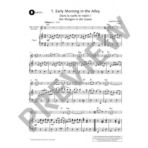 Obsazení: Altblockflöte und Klavier (Gitarre/Akkordeon)