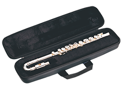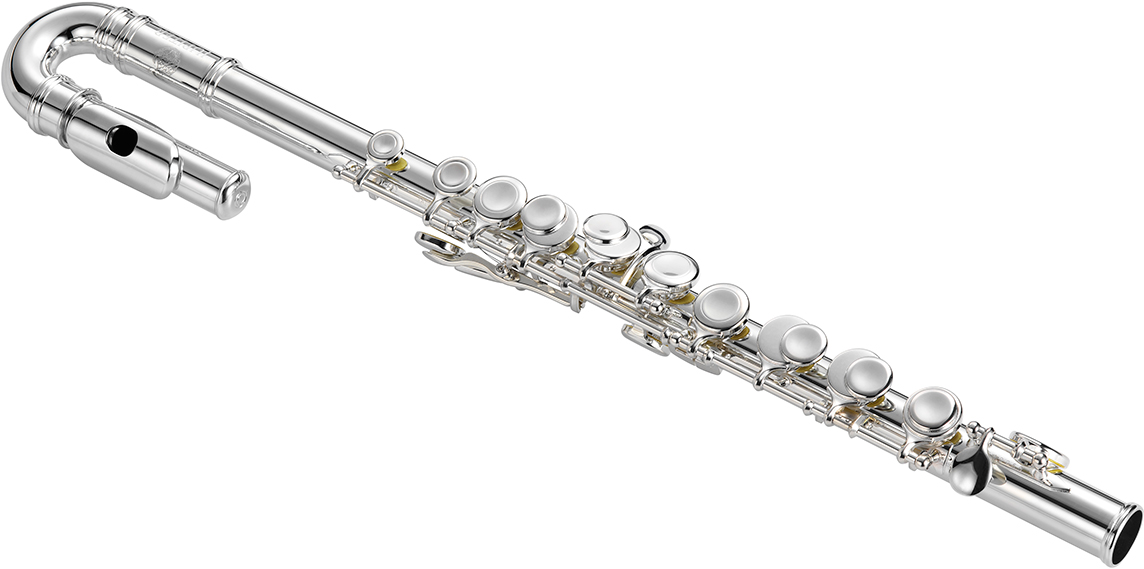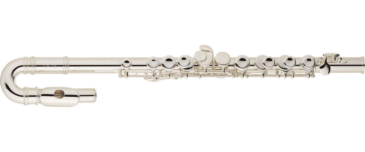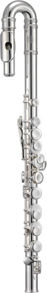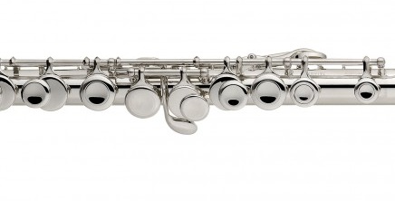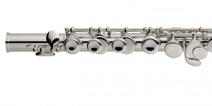 tělo flétny, zahnutá hlavice, mechanika - alpaka (nové stříbro), postříbřená