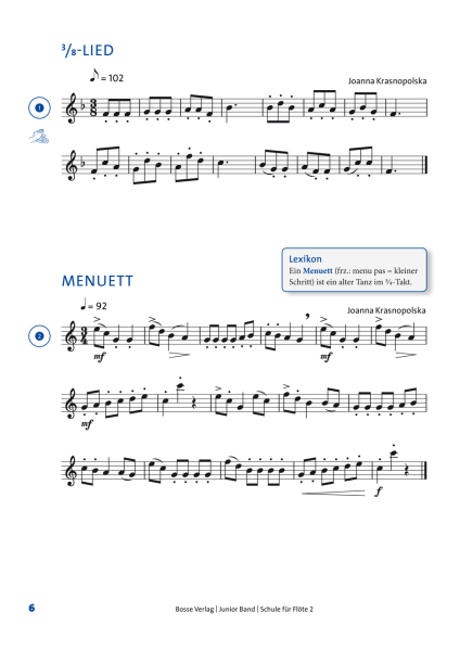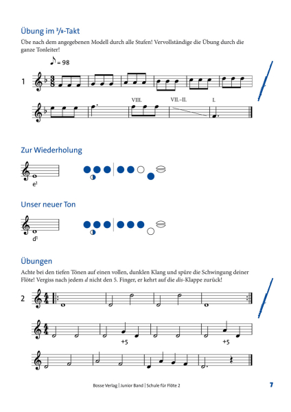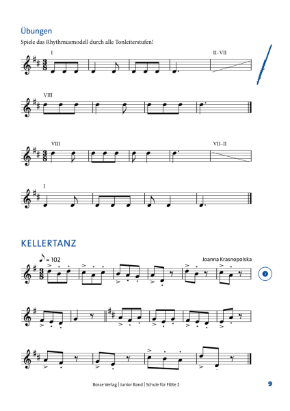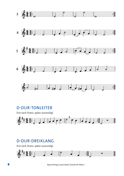 In fünf Kapiteln vertieft Band 2 dieser Instrumentalschule das Spiel auf der Querflöte und erweitert kontinuierlich den Tonumfang bis zum g3. Die Grifftabelle zu Beginn des Heftes gibt einen Überblick über alle verwendeten Töne. Neben der Vermittlung theoretischen Rüstzeugs, wie neuer Vorzeichen, enharmonischer Verwechslungen, neuer Taktarten und Rhythmen gehen spezielle Übungen auf Klangaufbau, guten Ansatz – auch in der Höhe – und Interpretation ein. Mithilfe der beigelegten CD können viele Übungstücke und Lieder noch einmal angehört oder im Zusammenspiel geübt werden.