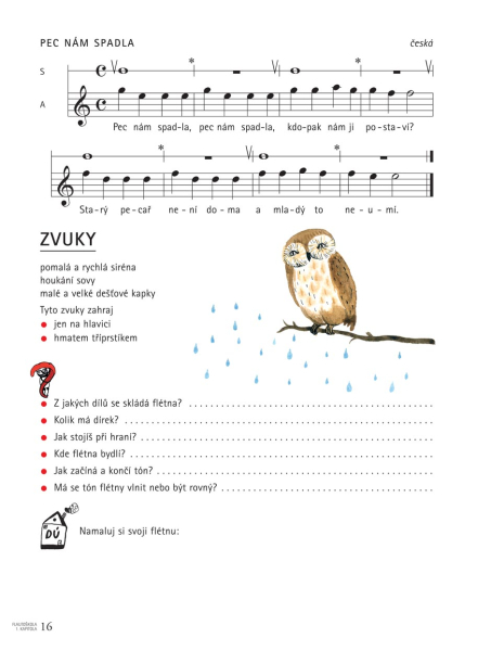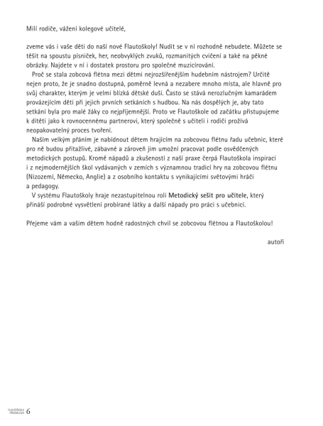Dvoudílná moderní učebnice, doplněná přednesovými skladbami různých stylů i řadou metodických materiálů v samostatných sešitech je určená především žákům ZUŠ od 6 let a jejich pedagogům. Kromě nápadů a zkušeností z praxe autorů čerpá inspiraci ze zkušeností předních světových pedagogů a z osvědčených zahraničních škol vydávaných v zemích s významnou tradicí hry na zobcovou flétnu (Nizozemí, Německo, Anglie). Hravou formou a za pomoci písniček, her, neobvyklých zvuků, rozmanitých cvičení a dětských ilustrací seznamuje malé hráče se základními technickými i hudebními návyky.