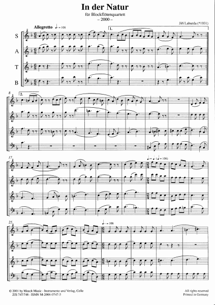 Obsazení: 4 Blockflöten (SATB)