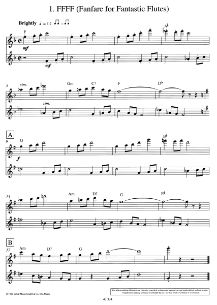 Jedes Heft der Reihe "Flute Fun" enthält 15 Stücke, die sich nicht nur in ihrem Schwierigkeitsgrad voneinander unterscheiden, sondern auch was Melodie, Harmonie und Rhythmus angeht.