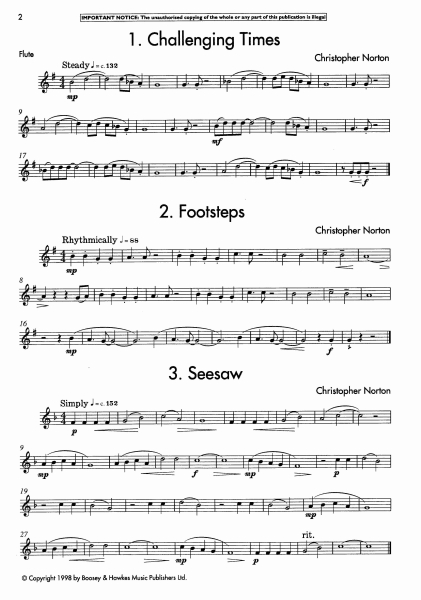 Die spritzigen Begleitstimmen bieten zusammen mit den melodienreichen und rhythmischen Soloparts einen Fundus an Stilen für Spieler aller Altersstufen. Die Stücke sollten nicht zu schnell gespielt werden, und die Nuancen der Dynamik und Artikulation sollten ebenso präzise beachtet werden wie die rhythmische Genauigkeit. Die Soloparts sind mittelschwer, aber eine eingehende Beschäftigung mit ihnen lohnt sich für alle Spieler aller Stufen. Die meisten Begleitstimmen, die auch leicht zu bewältigen sind, können auf dem Klavier oder auf elektronischen Tasteninstrumenten gespielt werden.