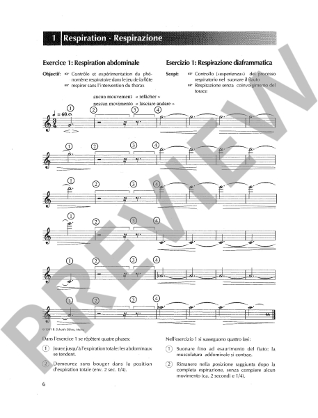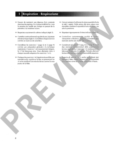 20 Basis-Übungen: Atmung; Ansatz; Finger I; Tonleitern und Arpeggien; Registerwechsel I; Artikulation; Ton; Finger II; Registerwechsel II; Finger III