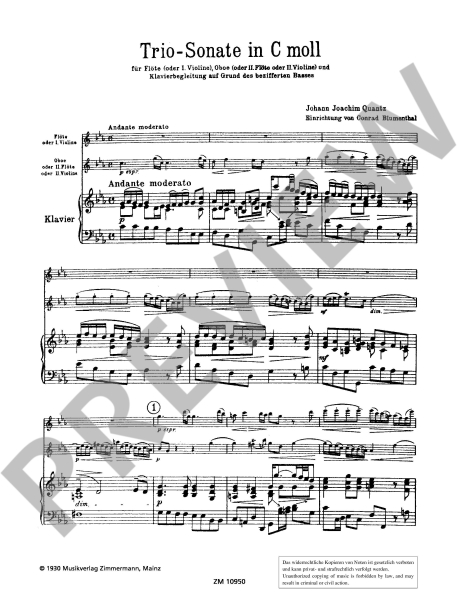 Obsazení: Flöte (1. Violine), Oboe (2. Flöte/2. Violine) und Klavier