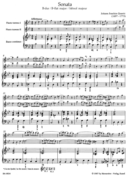 Triosonate für zwei Flöten und Basso continuo B-Dur