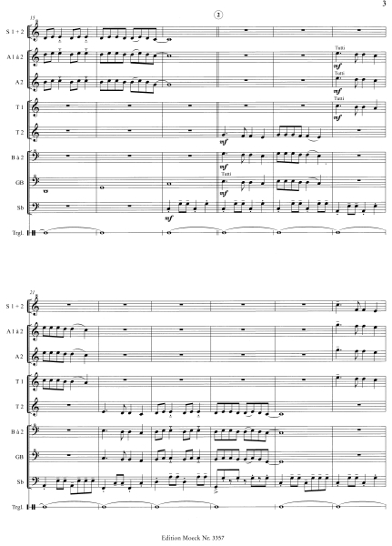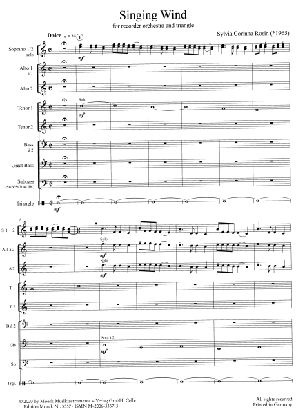Obsazení: Blockflötenorchester (2Ssolo 2A 2T B Gb Sb) und Triangel