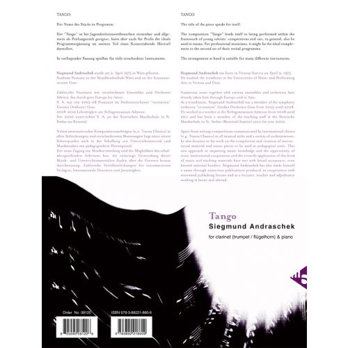 Der „Tango“ ist bei Jugendsolistenwettbewerben einsetzbar und allgemein als Prüfungsstück geeignet, kann aber auch für Profis die ideale Programmergänzung im zweiten Teil eines Konzertabends (Recital) darstellen.