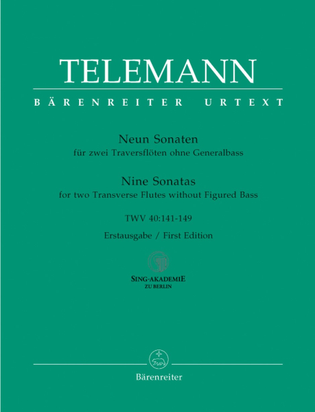 Zu Telemanns beliebtesten und meist gespielten Werken gehören heute seine Kompositionen für Soloflöte und vor allem seine vielen Werke für zwei Flöten. Seine „Neun Sonaten für zwei Flöten ohne Bass“ wurden vor wenigen Jahren in Kiew als Teil der berühmten Sammlung der Berliner Sing-Akademie entdeckt, die gegen Ende des Zweiten Weltkriegs aus Berlin entfernt wurde. Die Erstausgabe ist also eine kleine Sensation für alle Flötisten.