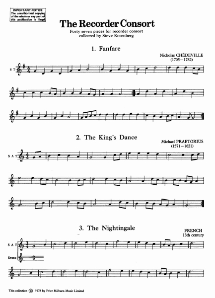 Dieses Buch ist für den Gebrauch der beständig wachsenden Zahl von Schulgruppen und Blockflöten-Ensembles, die Zugang zu einem umfassenden und leicht spielbaren Repertoire von Musik für Blockflöte benötigen, bestimmt. Diese Stücke wurden nicht wegen irgendeiner bestimmten musikwissenschaftlichen Signifikanz ausgewählt, sondern einfach wegen ihrer Spielbarkeit. Viele der einbezogenen Stücke sind von durchschnittlicher Schwierigkeit, die auch von Blockflöten-Ensembles oder von Gruppen im ersten Studienjahr in Angriff genommen werden können. Einige sind schwieriger, doch sollten Blockflöten-Ensembles, die auf dem Weg zu einem höheren Standard der Spieltechnik sind, sowohl Vergnügen als auch Befriedigung daran finden.