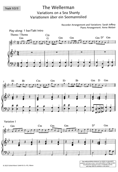 Das Seemannslied „The Wellerman“ wurde über Nacht durch Nathan Evans zum Hit. Die Blockflötistin Sarah Jeffery greift es auf und liefert Variationen, die einfach Spaß machen zu spielen. Zwei alternative Versionen – auch in den Audios (Vollversion und Playbacks) – sind zugeschnitten auf einen mittleren und einen fortgeschrittenen Schwierigkeitsgrad. Sarah Jeffery ist selbstverständlich auch auf der Aufnahme zu hören und gibt Infos, Tipps und Tricks im Video. Für Sopran- oder Tenorblockflöte und Klavier, alternativ auch durch Akkordsymbole mit anderer Begleitung möglich.